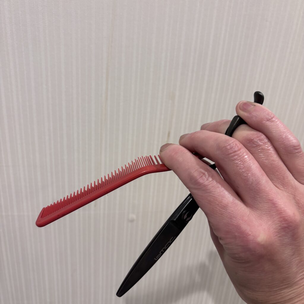コームとハサミの持ち方はこれでいいのだろうか・・・